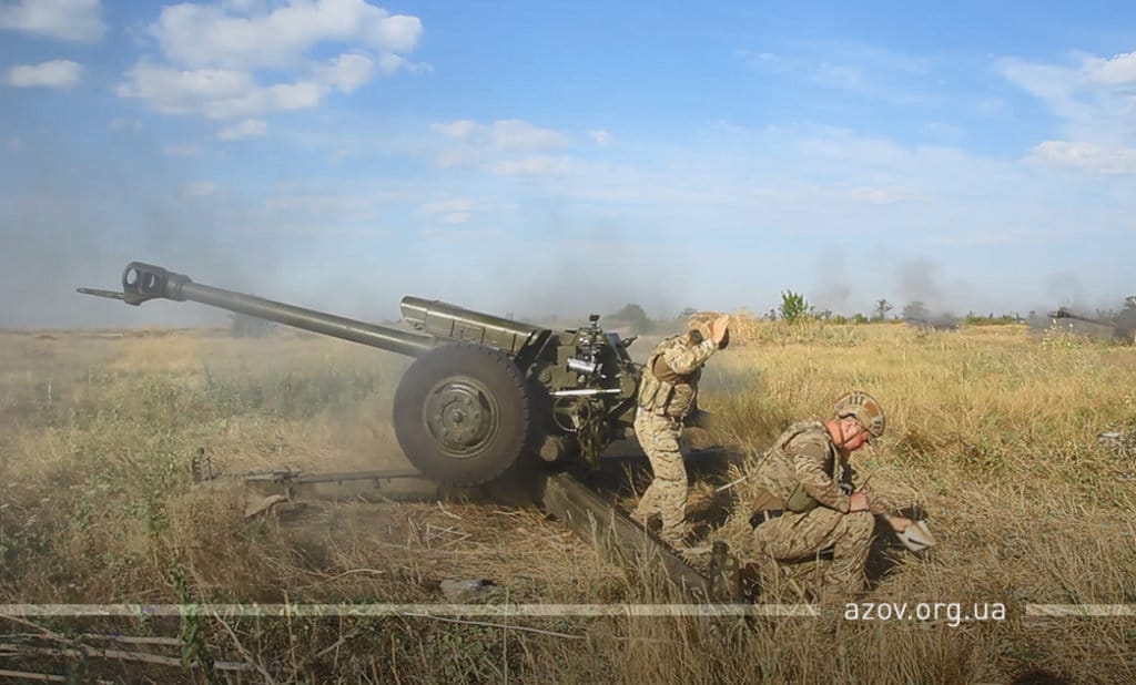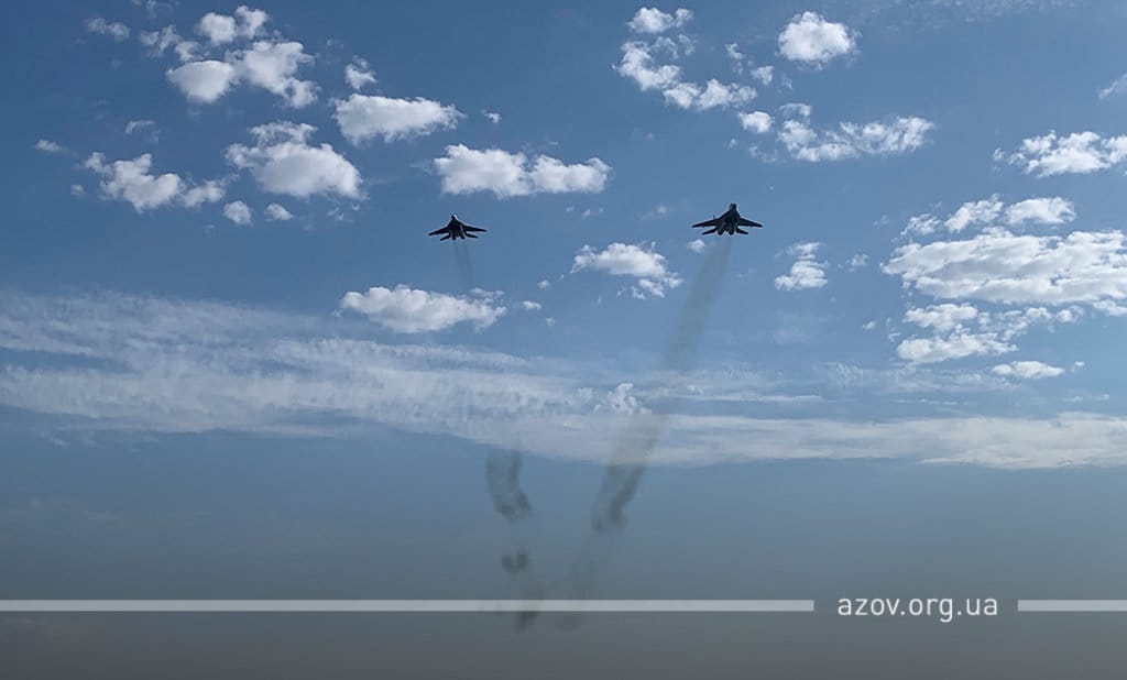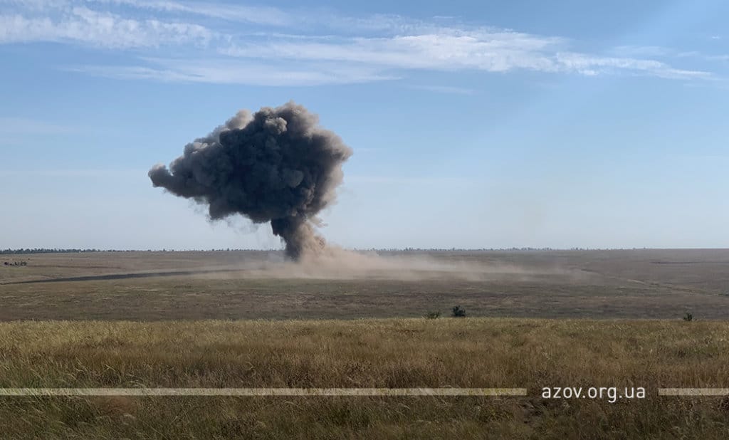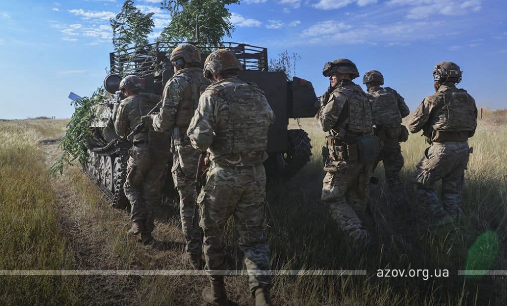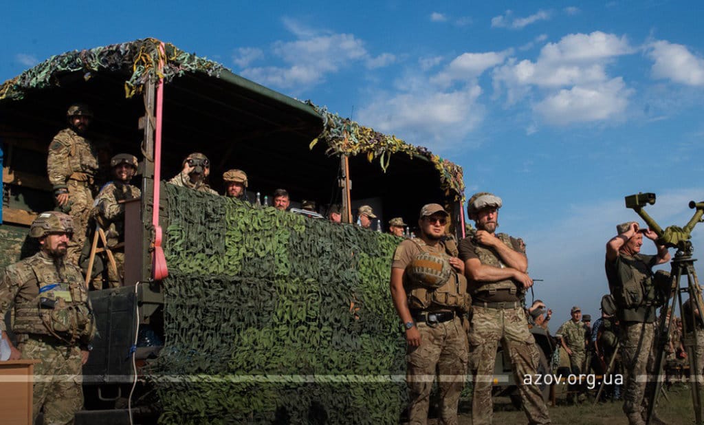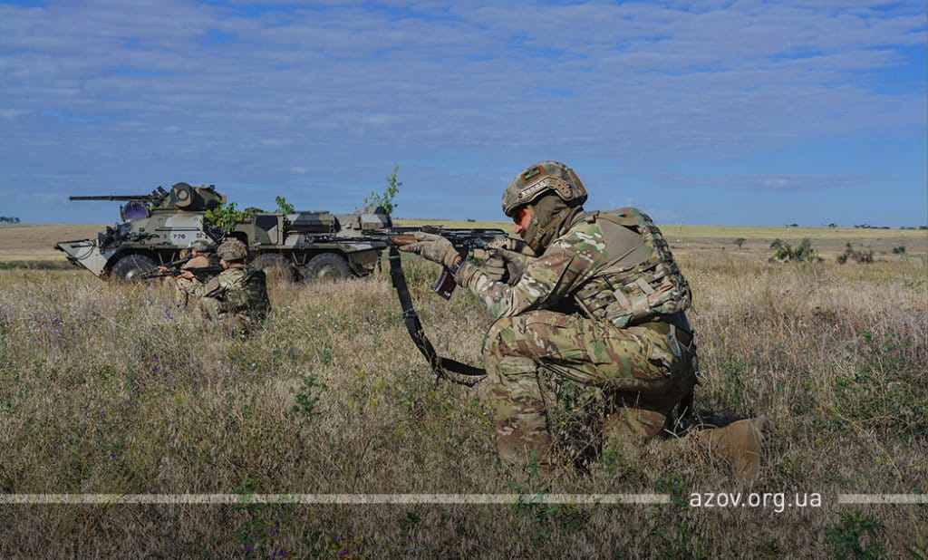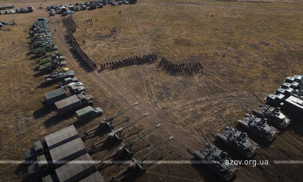 20 серпня на військовому полігоні «Урзуф» відбулися масштабні військові навчання з бойовою стрільбою за участі підрозділів Національної гвардії та Збройних сил України. Полк «Азов», особовий склад якого на час навчань був представлений у складі батальйонної тактичної групи «Азов», став основною одиницею загальновійськового резерву, залученою до навчань. БТГр «Азову» склали дві піхотні роти полку, танковий підрозділ, снайперська група, групи розвідки, інженерно-саперне відділення, мінометники, артилеристи, бійці зенітного ракетного підрозділу та інші сили. Вперше на навчаннях такого рівня була продемонстрована майстерність азовців у справі безпарашутного десантування, здійсненого з кабіни Мі-8, що на навчаннях представив військову авіацію спільно з екіпажами Су-25. Азовці продемонстрували професіоналізм надвисокого рівня та підтвердили готовність свого підрозділу якісно виконувати завдання за призначенням на передовій.