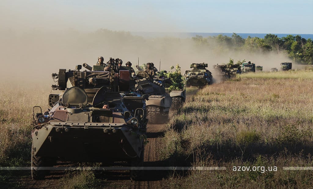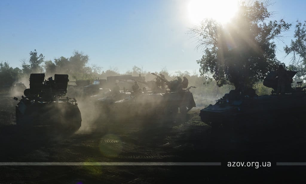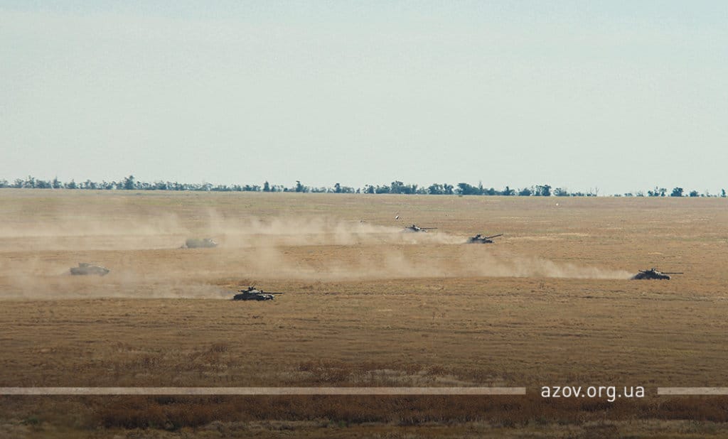 Командир полку «Азов» капітан Денис Прокопенко під час шикування особового складу по завершенню маневру подякував командуванню Об‘єднаних сил за надану змогу взяти участь у цих навчаннях та всім іншим підрозділам, які сьогодні працювали в інтересах батальйонної тактичної групи «Азов», а також сказав наступне: