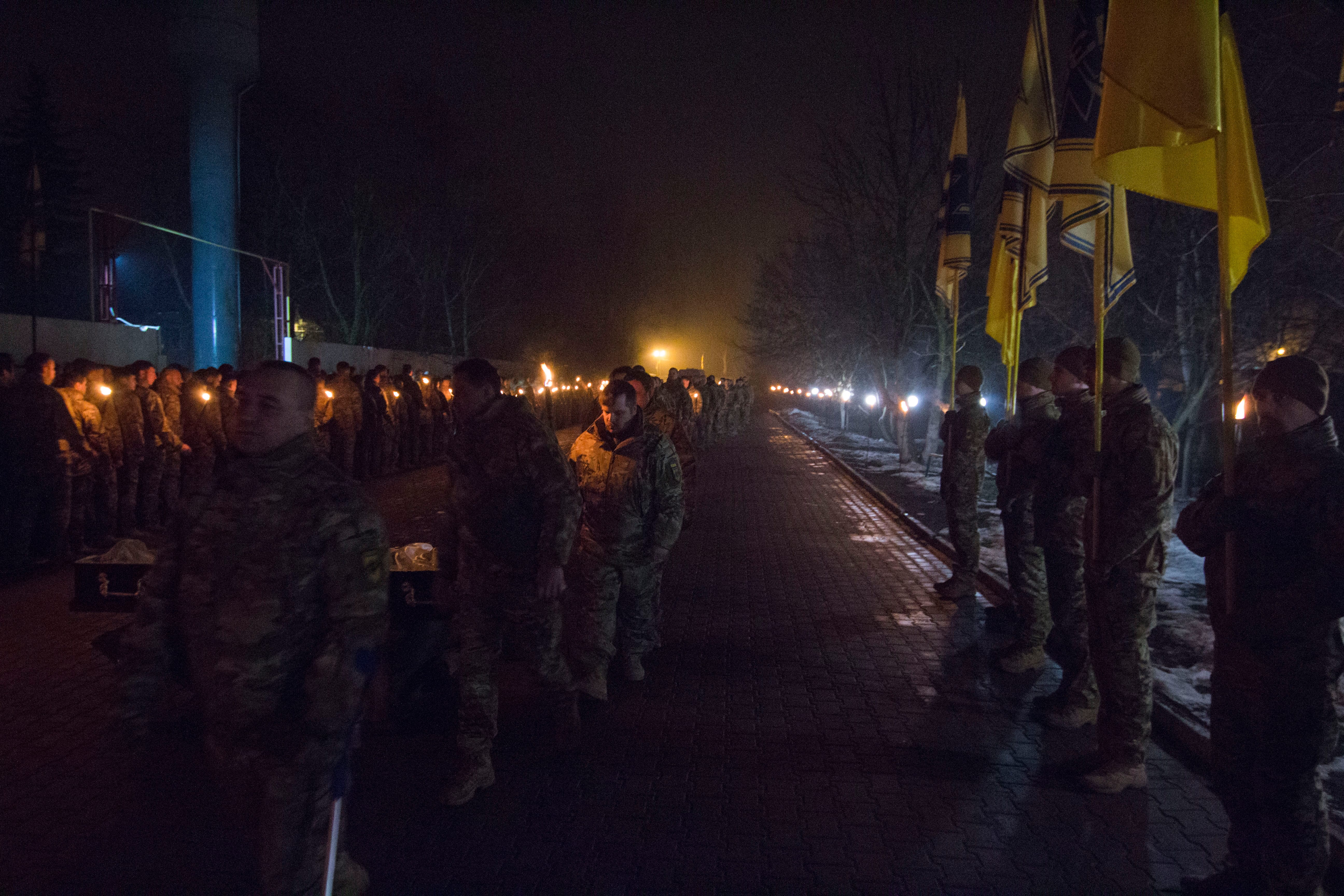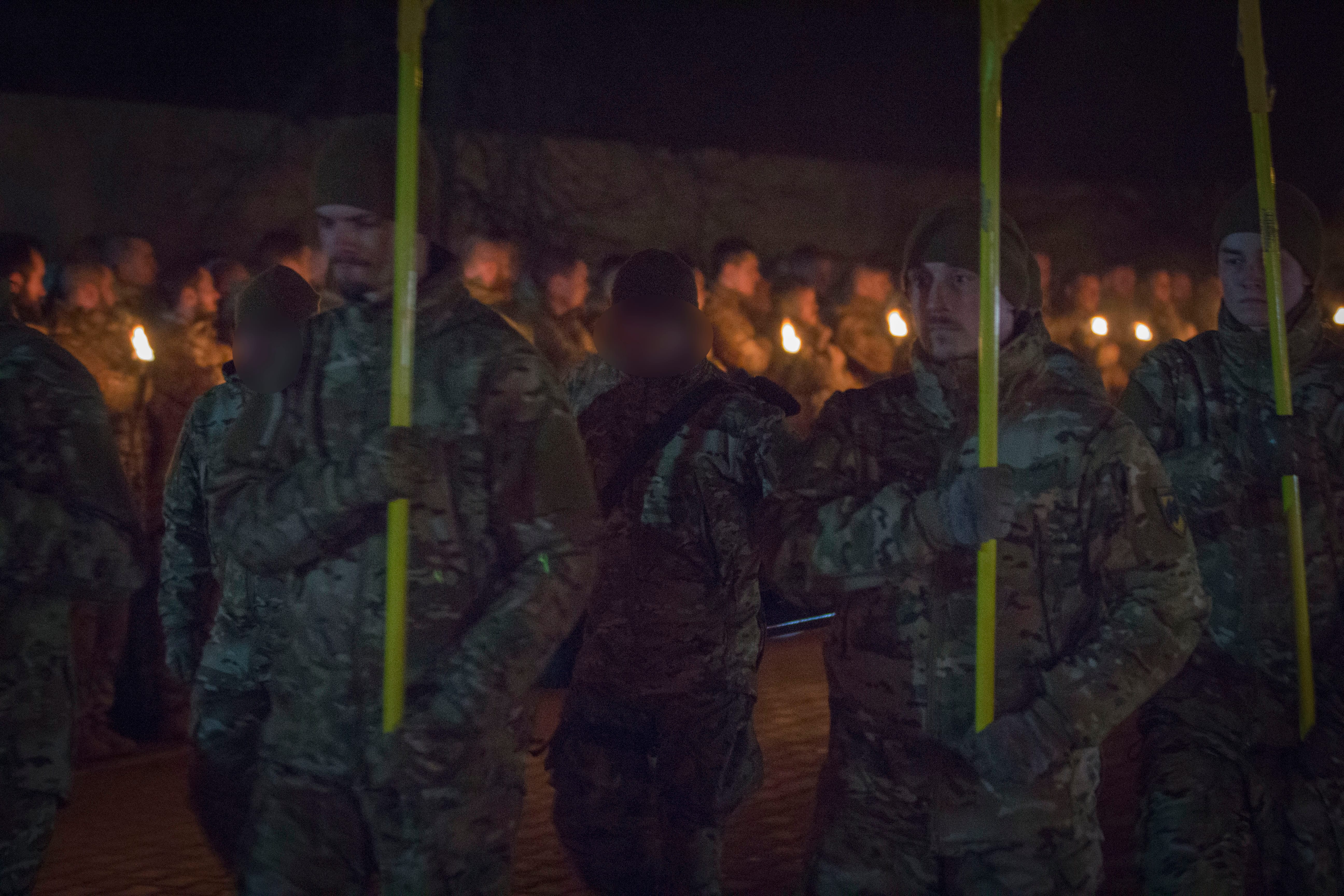 База полку АЗОВ в Урзуфі нині не така, як завжди: тиша, десятки вогнів, командування та особовий склад у скорботі. Це Юру Баррета проводжають до пращурів у вічність. Попрощатися з бійцем приїхали і колишні командири АЗОВу Андрій Білецький та Максим «Мосе» Жорін.