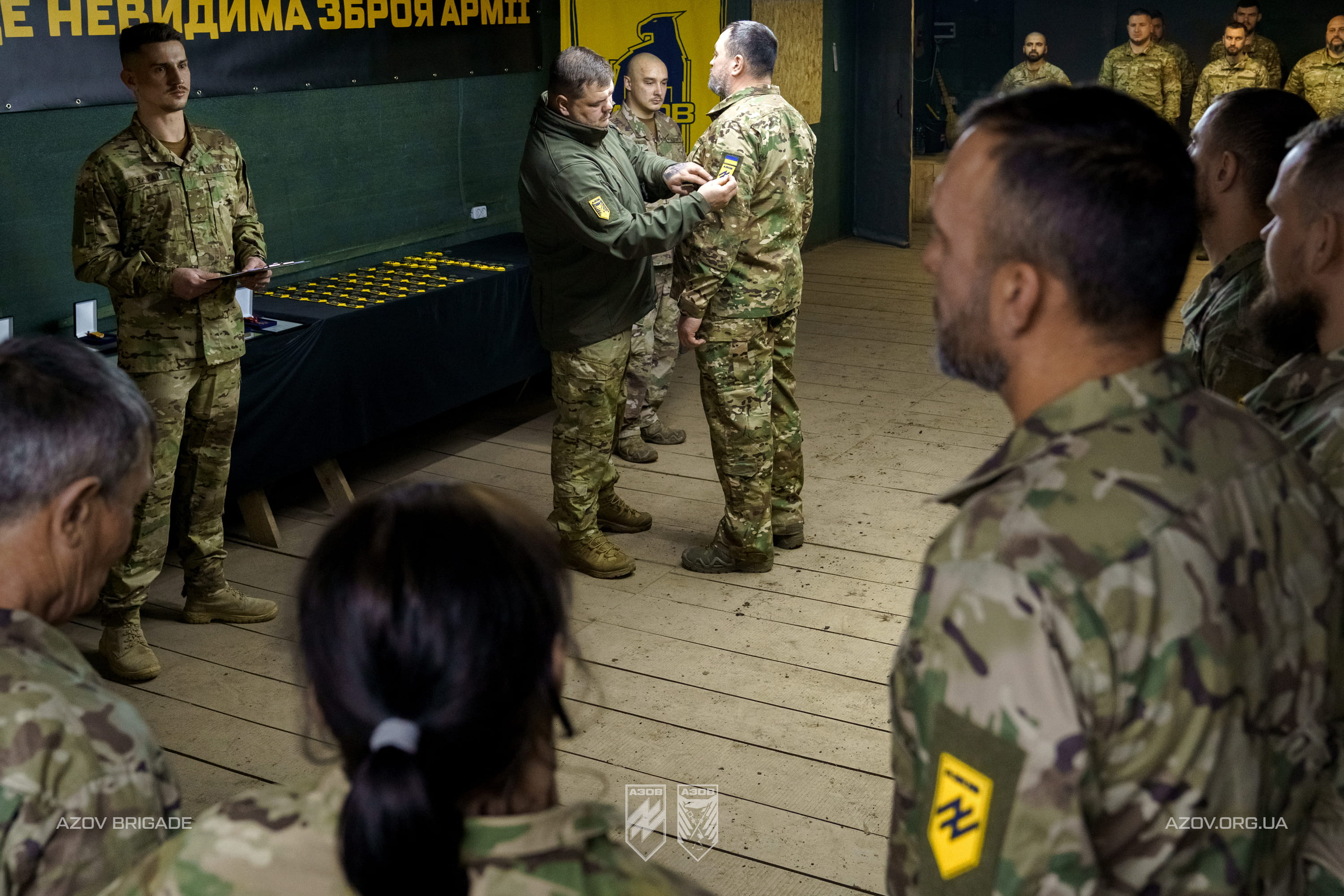 Військовослужбовці отримали державні та відомчі нагороди, а також найвищу бригадну й батальйонну відзнаку — шеврон. Його вручення є визнанням заслуг і права називатися азовцем.