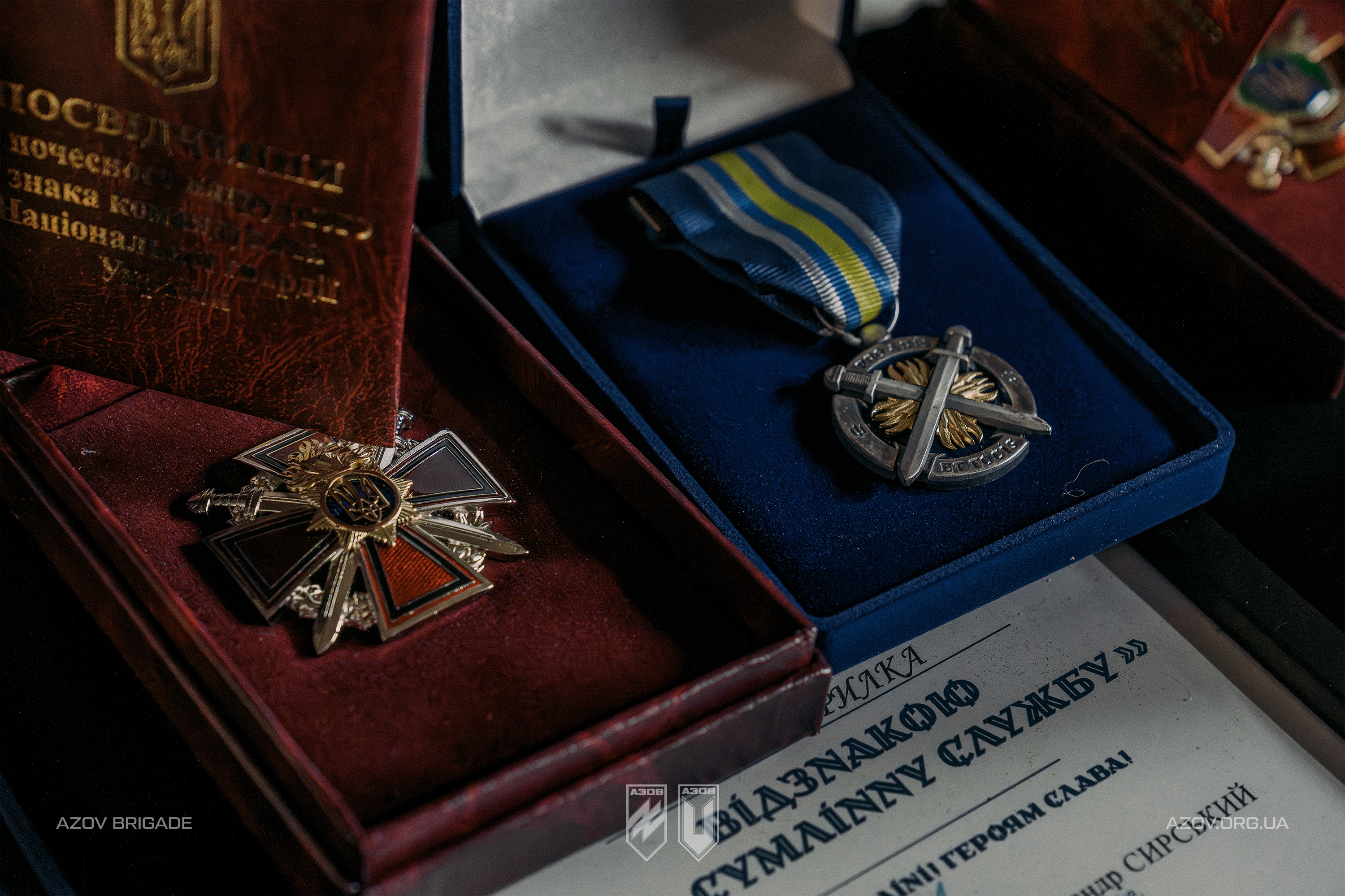 - Почесні нагрудні знаки Головнокомандувача ЗСУ «Хрест Військова честь» та «За сумлінну службу»;